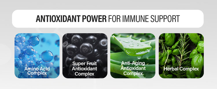 Supports a strong immune system with vitamins A, C, E and potent herbal antioxidants